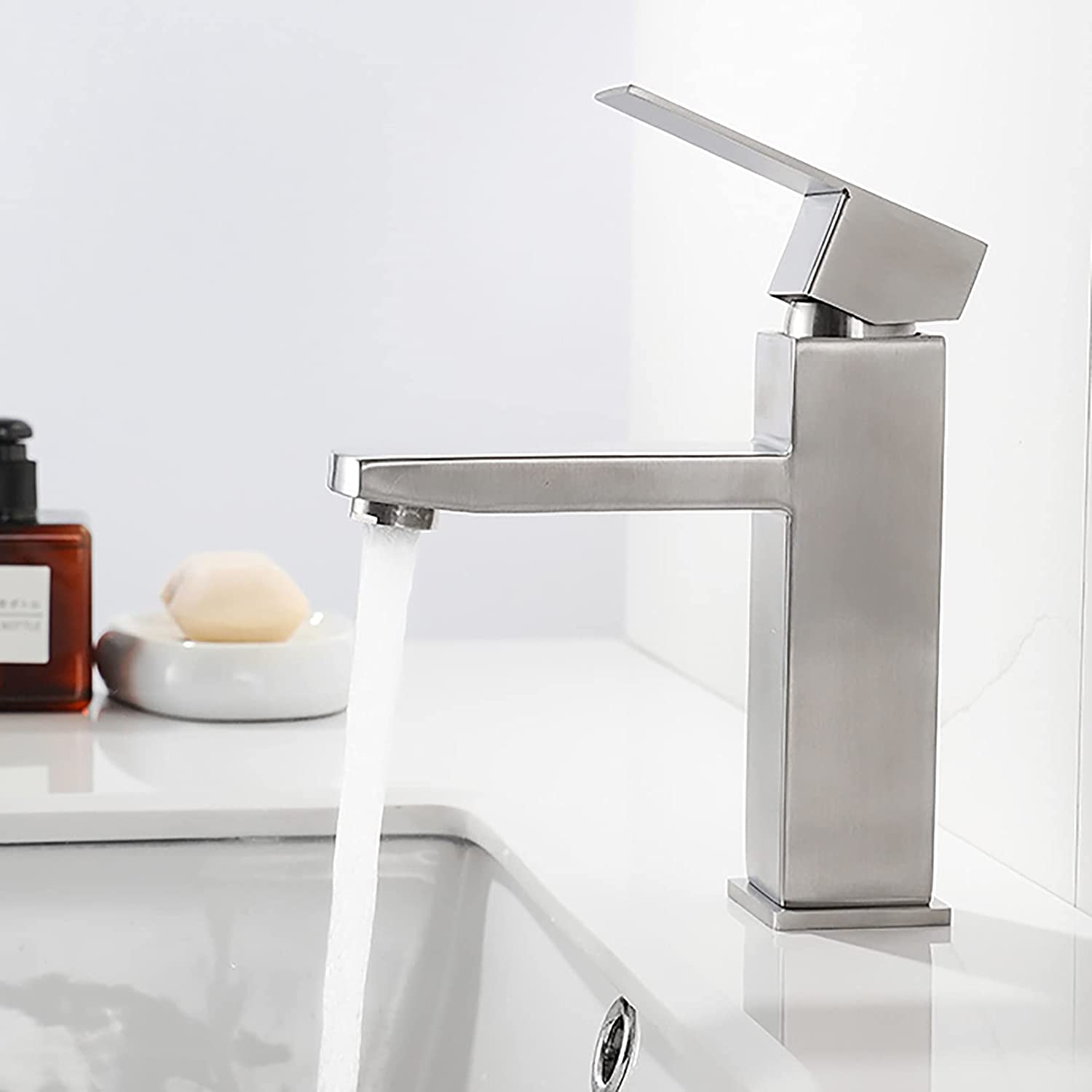 Monomando Para Lavabo Cuadrado Corto 17 Cm Satinado 10041-1