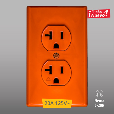 Contacto 20a Duplex Naranja Con Placa Y Tierra Aislada 20 Amperes Se-830n